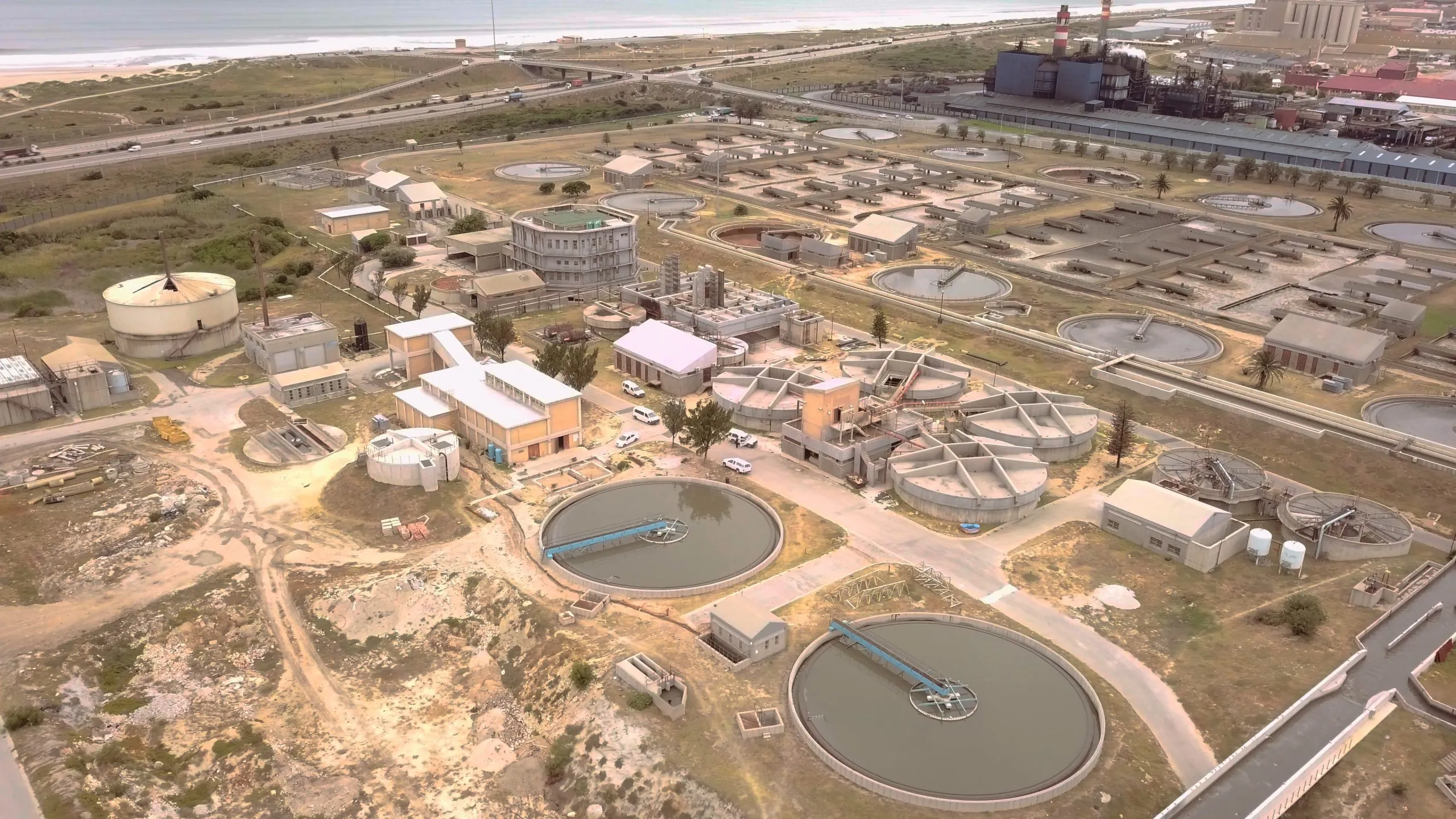 Aerial view of the Fishwater Flats Waste Water Treatment Works in Nelson Mandela Bay Metropolitan Municipality. Credit: Charles Meadows for REEEP